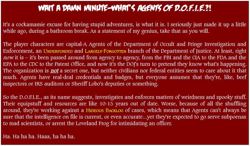 [Another aside: changing jargon in indie games is getting to be a habit of mine. You know how in Fate, when you beat the difficulty by 3 or more, you are said to 'Succeed with Style'? Nuh-uh. In my game, if you beat the difficulty by 3 or more, you Are Badass. "I'm gonna jump off the bridge and land on the speeder bike!" "Roll Athletics, Great difficulty!" "My result is -- Legendary! I AM BADASS!" That's more my style.]